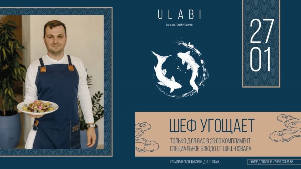 27 января в 20:00 — в паназиатском ресторане ULABI шеф лично представит гостям эксклюзивное комплиментарное блюдо, расскажет о каждом ингредиенте и поделится секретами идеального вкуса.